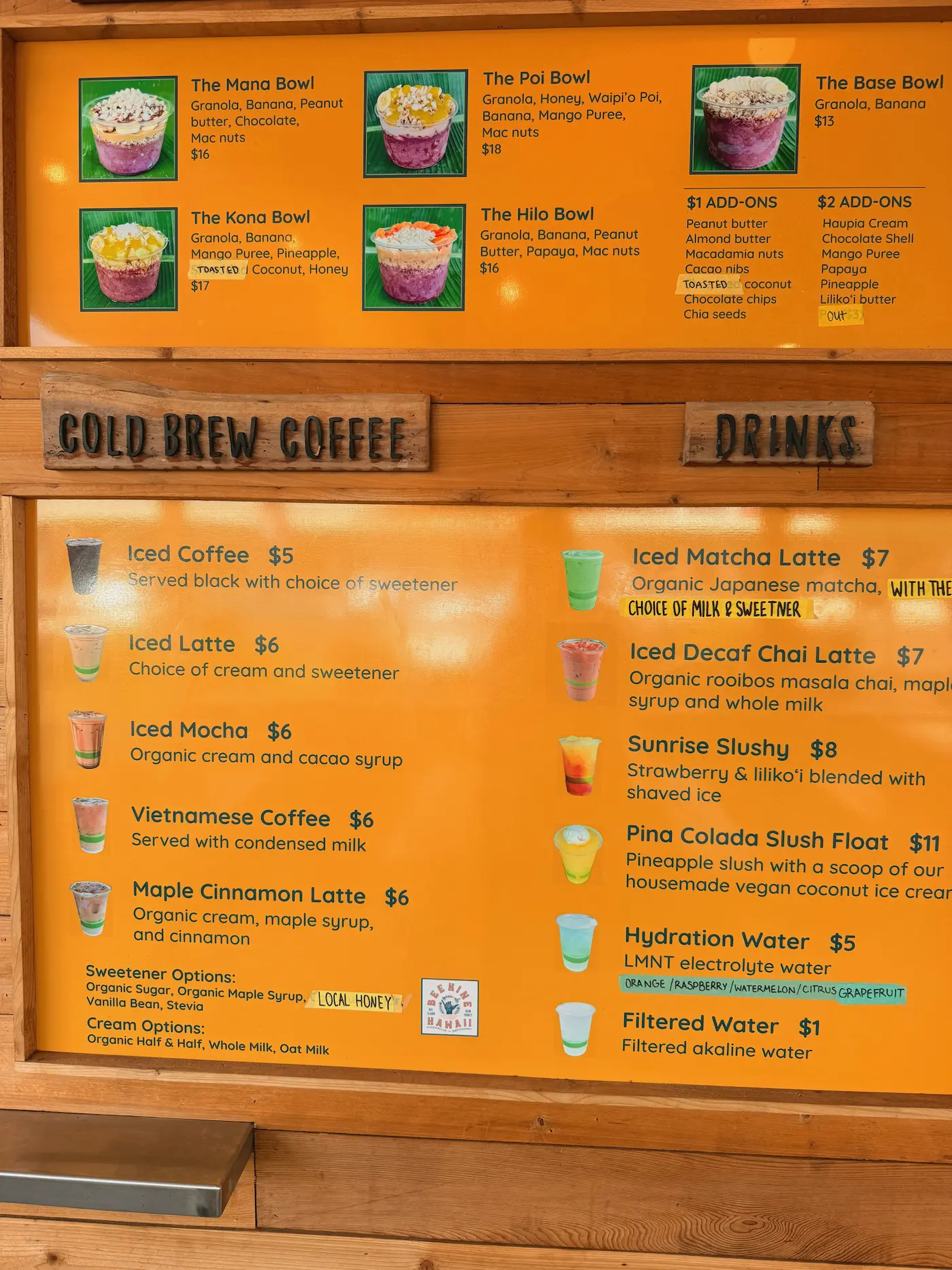 They’re known for their hand-whisked matcha drinks (which locals rave about) and also serve a variety of coffee beverages made with locally roasted Ka‘u coffee, including cold brew, lattes, and specialty espresso drinks. Beyond coffee and matcha, Hilo Coffee Corner also offers smoothies, acai bowls, refreshing cold drinks, and grab-and-go treats, making it a nice spot to fuel up mid-day.